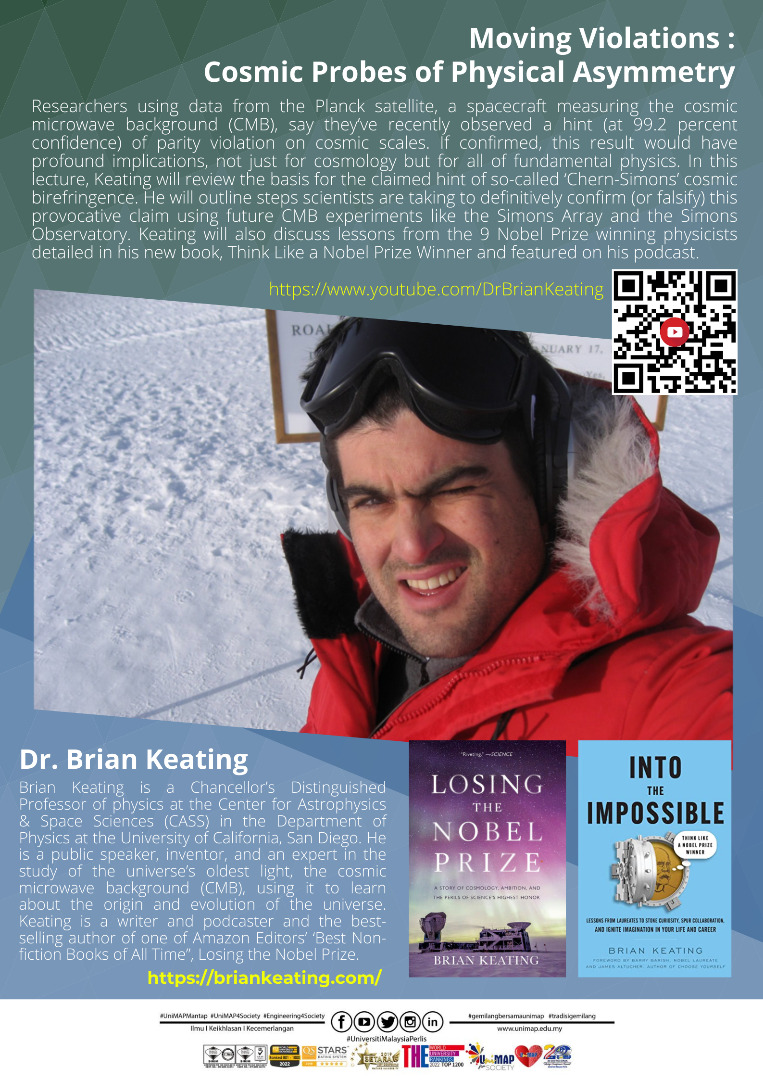 Prof. Dr. Brian G. Keating is an American cosmologist and a Chancellor’s Distinguished Professor of physics at the Center for Astrophysics & Space Sciences (CASS) in the Department of Physics at the University of California, San Diego. He is a public speaker, inventor, and expert in the study of the universe’s oldest light, the cosmic microwave background (CMB), using it to learn about the origin and evolution of the universe. Keating is a writer (Losing The Nobel Prize (2018) and Into the Impossible (2021)) and podcaster. Losing the Nobel Prize is the best-selling author of one of Amazon Editors’ ‘Best Non-fiction Books of All Time”. He has lectured on six of seven continents, and his lectures have been seen in person and online by over 5 million viewers. He also teaches astronomy to high school students since 2012 as part of his outreach work and has given presentations to over 3,000 K-12 students since 1994.