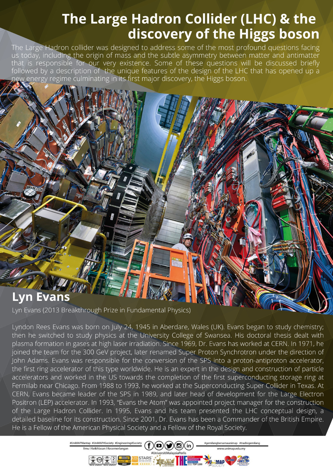 Lyndon Rees Evans was born on July 24, 1945 in Aberdare, Wales (UK). Evans began to study chemistry; then he switched to study physics at the University College of Swansea. His doctoral thesis dealt with plasma formation in gases at high laser irradiation. Since 1969, Dr. Evans has worked at CERN. In 1971, he joined the team for the 300 GeV project, later renamed Super Proton Synchrotron under the direction of John Adams. Evans was responsible for the conversion of the SPS into a proton-antiproton accelerator, the first ring accelerator of this type worldwide. He is an expert in the design and construction of particle accelerators and worked in the US towards the completion of the first superconducting storage ring at Fermilab near Chicago. From 1988 to 1993, he worked at the Superconducting Super Collider in Texas. At CERN, Evans became leader of the SPS in 1989, and later head of development for the Large Electron Positron (LEP) accelerator. In 1993, “Evans the Atom” was appointed project manager for the construction of the Large Hadron Collider. In 1995, Evans and his team presented the LHC conceptual design, a detailed baseline for its construction. Since 2001, Dr. Evans has been a Commander of the British Empire. He is a Fellow of the American Physical Society and a Fellow of the Royal Society.