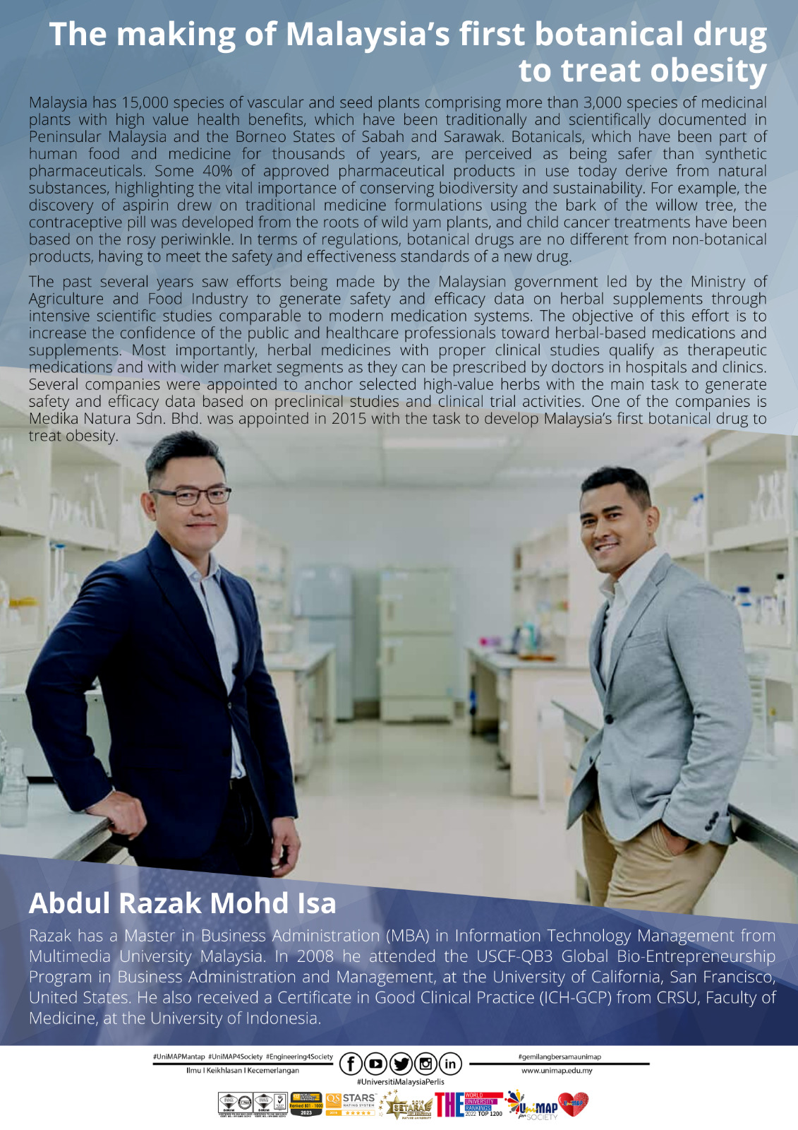 Abdul Razak Mohd Isa has a Master in Business Administration (MBA) in Information Technology Management from Multimedia University Malaysia. In 2008 he attended the USCF-QB3 Global Bio-Entrepreneurship Program in Business Administration and Management, at the University of California, San Francisco, United States. He also received a Certificate in Good Clinical Practice (ICH-GCP) from CRSU, Faculty of Medicine, at the University of Indonesia.