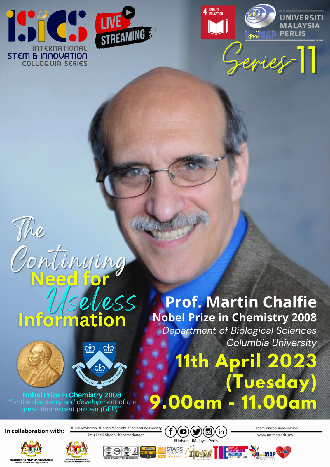 Martin Chalfie, the University Professor in the Department of Biological Sciences at Columbia University, shared the 2008 Nobel Prize in Chemistry for his introduction of green fluorescent protein (GFP) as a biological marker. Chalfie obtained his A.B. and Ph.D. from Harvard University and did postdoctoral research with Sydney Brenner at the MRC Laboratory of Molecular Biology, Cambridge, England. As a postdoctoral fellow, Chalfie, with John Sulston, established the first genetic model for mechanosensation using the nematode Caenorhabditis elegans. He and his lab subsequently used molecular, genetic, and electrophysiological means to study neuronal specification, differentiation, outgrowth, and degeneration; microtubule structure and function; and mechanosensory transduction and its modulation in C. elegans.